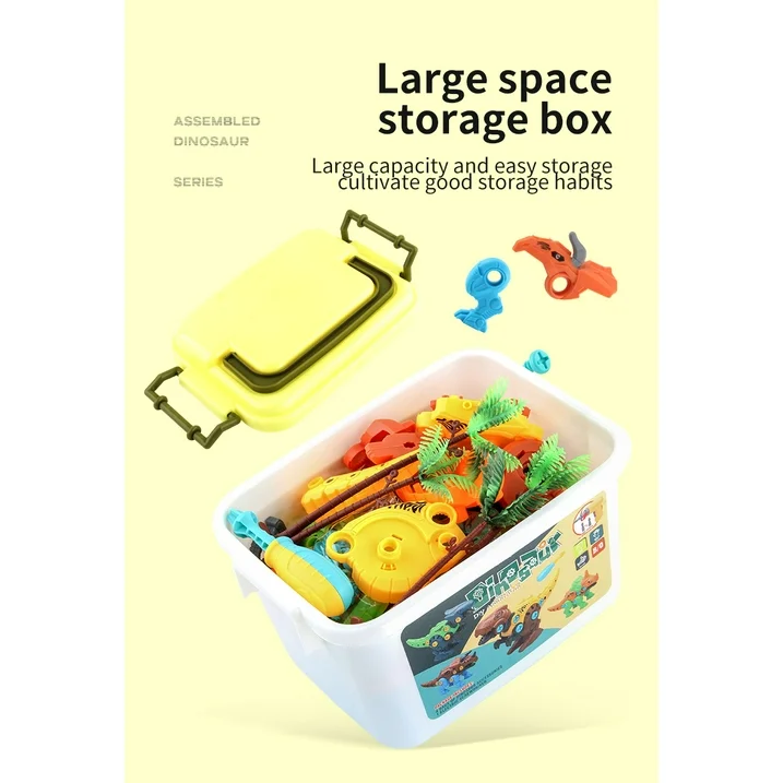 The dinosaur toys for boys include 4 dinos: Tyrannosaurus Rex, Triceratops, Velociraptor, Centrosaurus. Kids will enjoy the dinosaur adventures. Kids can open this dinosaur toys play set box and start playing immediately. The multi-color design helps attract children's attention to creative assembly. Simulation design and clear textures of dinosaur toys, enable kids to recognize and explore the world of dinosaurs. Each part is assembled by the children themselves, which can develop their hand-eye coordination and stimulate the imagination of dinosaurs. Let your children fall in love with assembly and dinosaurs!!! Our take apart dinosaur toys also contains electric drill with 2 different drill bits, easy to assembled disassemble. Dinosaur toys are made of high-quality, non-toxic and recyclable ABS plastic. The edges and corners have been specially treated, so you don't need to worry that the parts will scratch their hands during the assembly. By playing this dinosaur toys, children can acquire strong sense of color, hand-eye coordination, engineering design & logical thinking at early age.