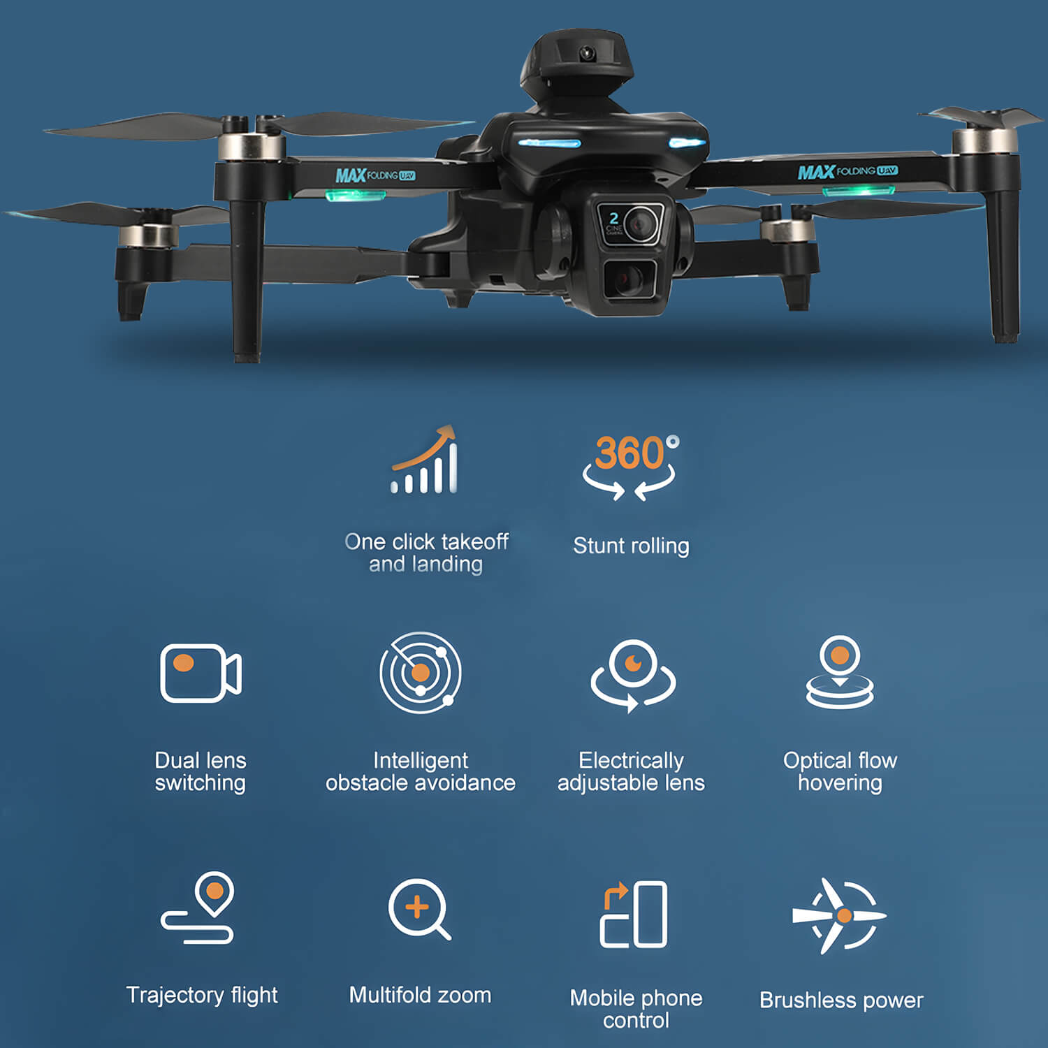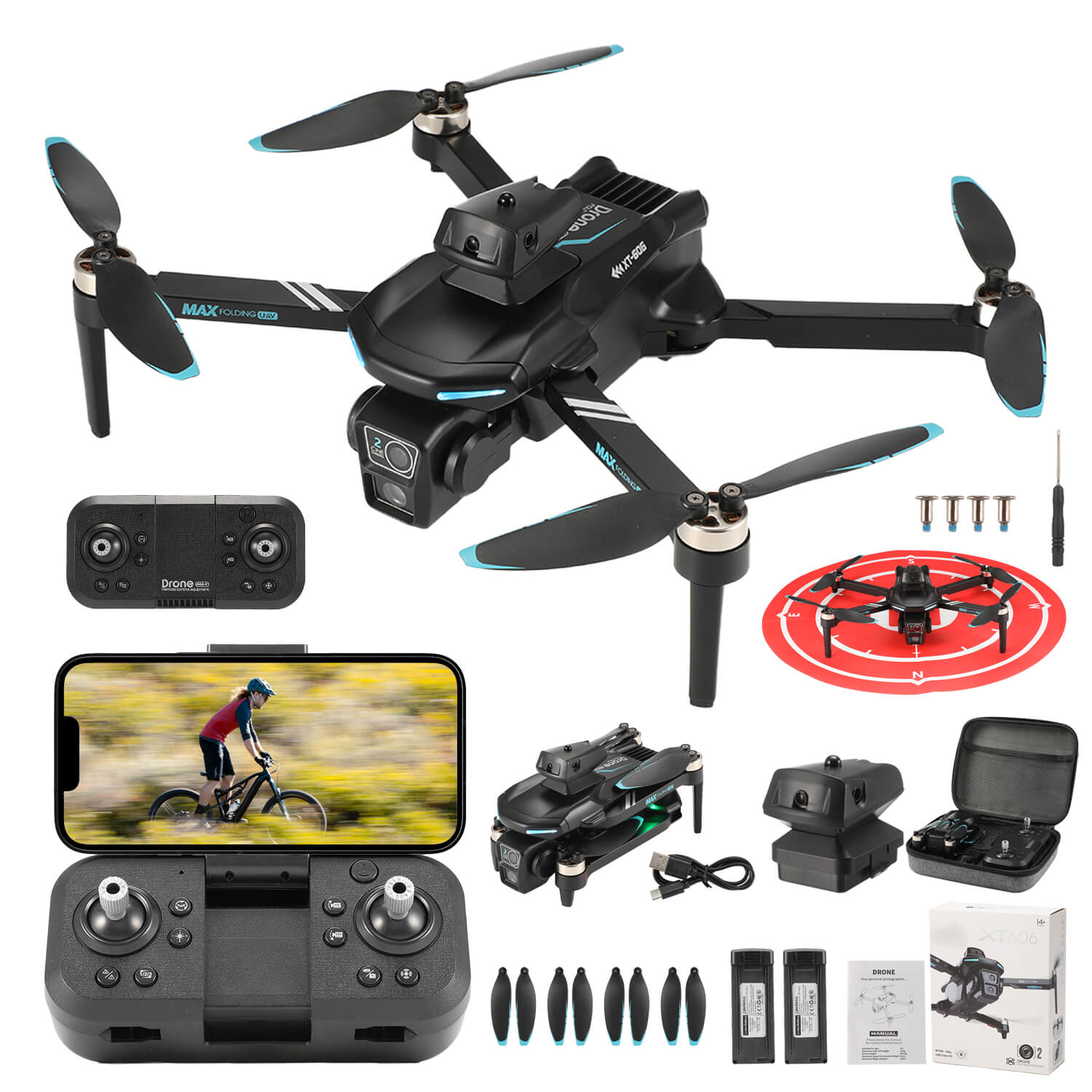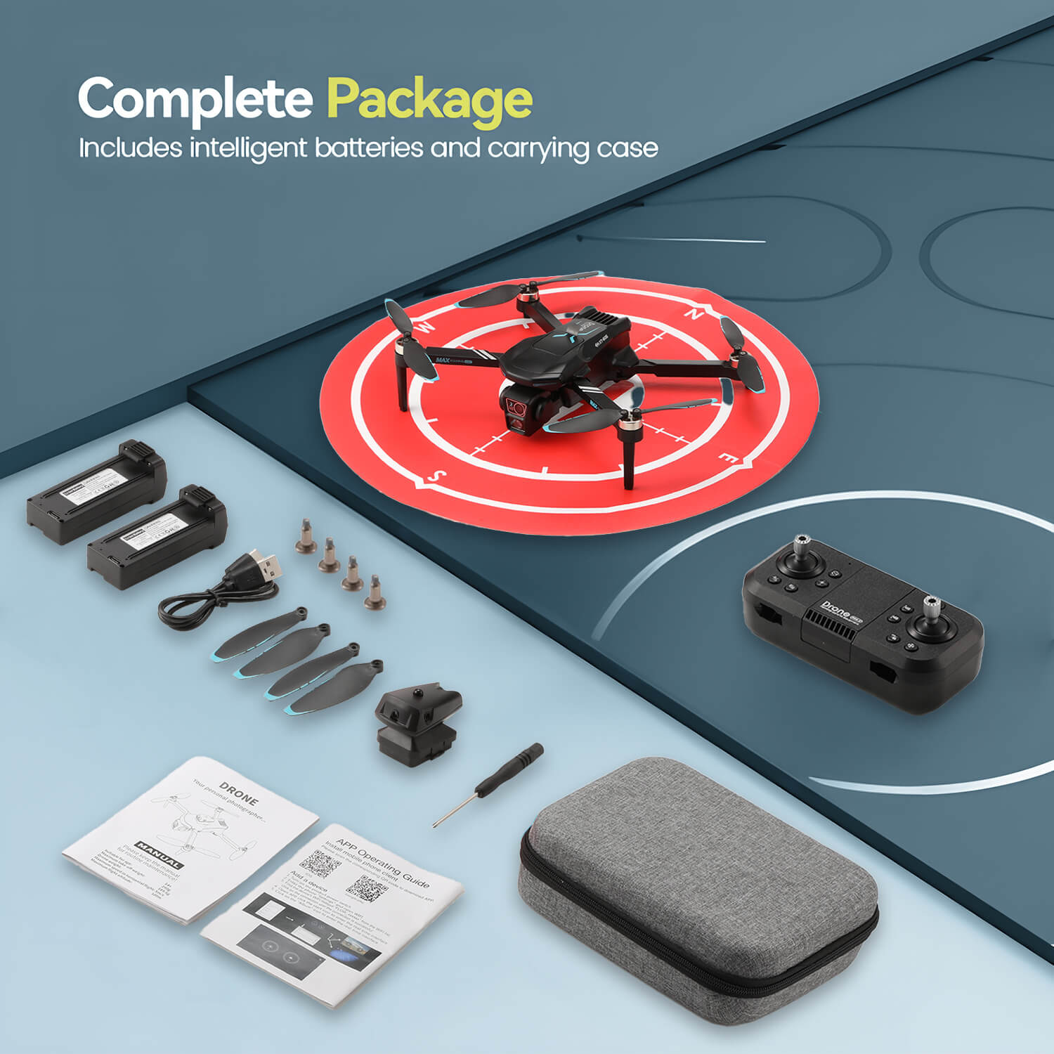 6K FPV Drone elevates aerial photography with its dual-camera system, featuring a 90° adjustable lens and a 110° wide-angle lens. Connect via WiFi to your smartphone for real-time transmission and easy control through the app. The drone offers stable flight with altitude hold, 2 speed settings, and a foldable design for portability. Simple one-button takeoff and landing make it beginner-friendly, while features like High-Speed Rotation, Circle Fly, Gesture Control, and Headless Mode cater to all skill levels. With two 1200 mAh batteries for extended flight time and a complete accessory set, including spare wind blades and a carrying case, it's the perfect gift for drone enthusiasts!